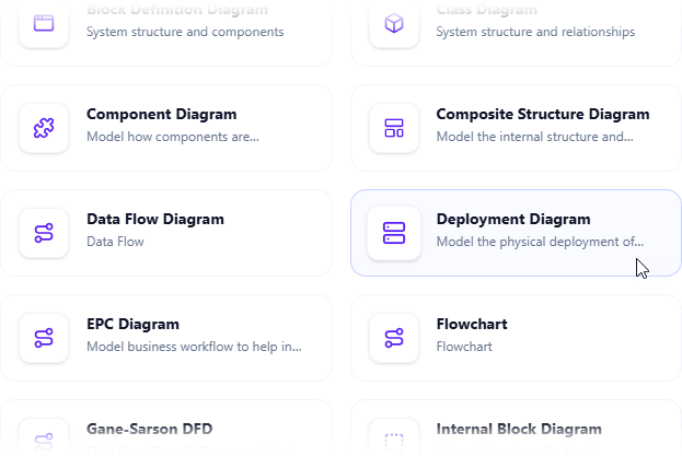 - Widest coverage for UML, C4, SysML, and beyond—including full deployment diagram support