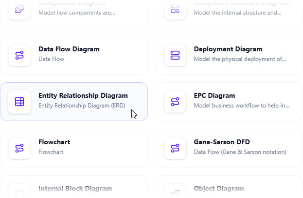 - Select Diagram Type: In the configuration window, locate the dropdown menu and pick Entity Relationship Diagram.