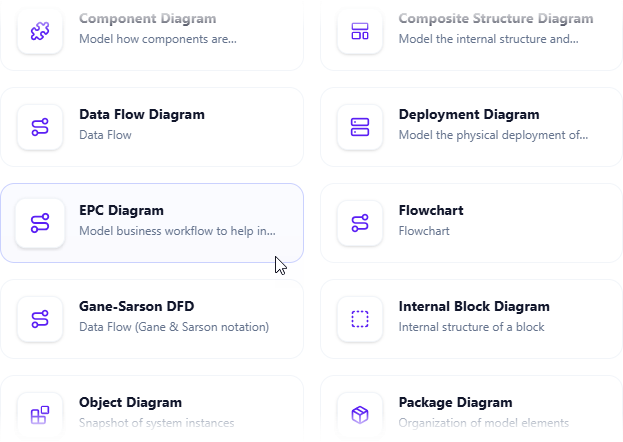 - In the window, choose your desired diagram type from the dropdown list. In this case, EPC Diagram.