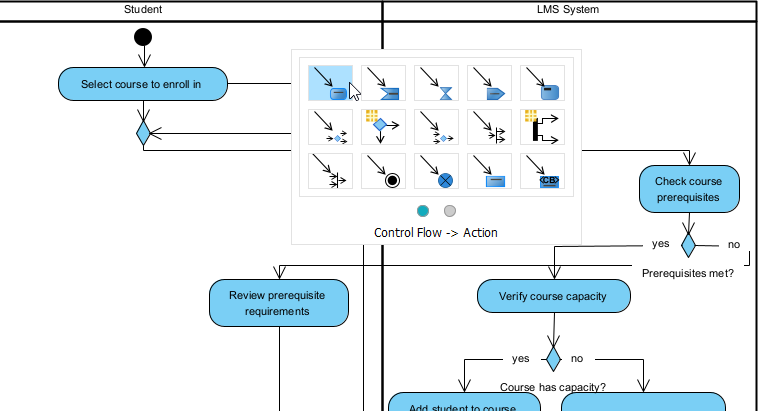 • Widest coverage: We support activity diagrams fully, plus dozens more UML types, BPMN, SysML, and beyond—with real AI integration.