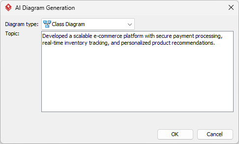 - From the main menu, select Tools > AI Diagram Generation. This opens the AI Diagram Generation window.