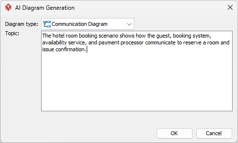 1. From the main menu, select Tools > AI Diagram Generation. This opens the AI Diagram Generation window.
