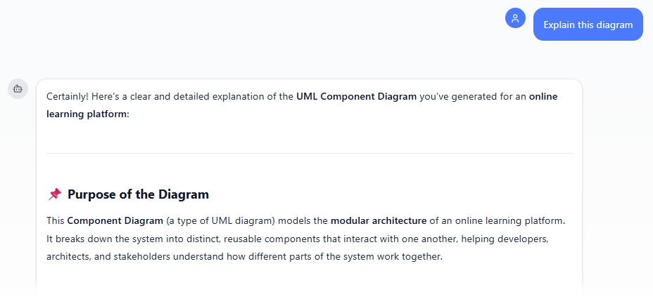 5. Review, refine, and embed the diagram: The AI generates a professional component diagram instantly.