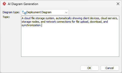1. From the main menu, select Tools > AI Diagram Generation. This opens the AI Diagram Generation window.