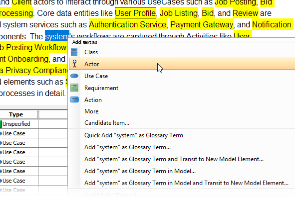 Think about a real scenario: You’re handed a lengthy requirements doc for a new app. Instead of highlighting nouns manually, use our AI textual analysis generator to pull out domain objects in seconds. Drag those candidates into class diagrams, add code engineering hooks, or export reports. No other tool blends this initial AI speed with such depth—traceability ensures changes ripple correctly, and version control keeps teams in sync. Perfect for enterprise architects who need models that are accurate, scalable, and ready for implementation.