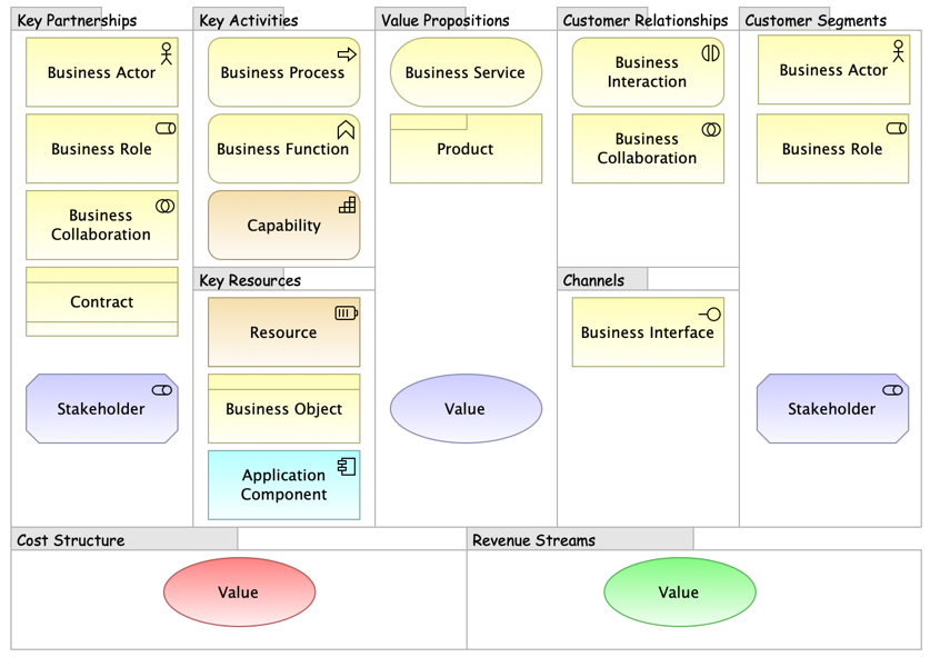 ArchiMate models can be easily adapted as business needs change. This flexibility allows organizations to quickly modify their BMC to reflect new strategies, market conditions, or operational changes.