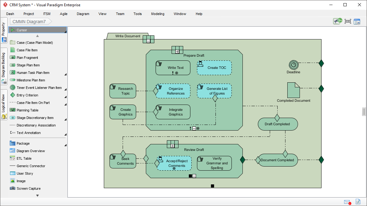 Visual Paradigm is a powerful and flexible tool for drawing CMMN diagrams and managing case management processes. To use Visual Paradigm for CMMN diagrams, follow these steps: