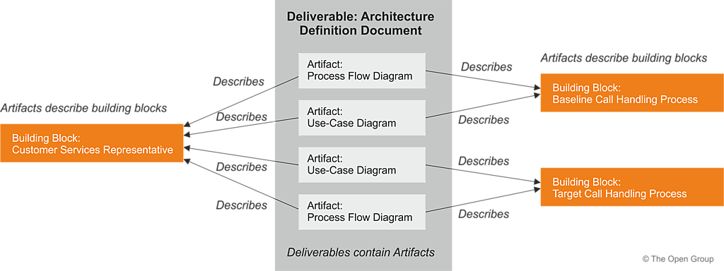 Artifacts are often contained within deliverables, which are formally reviewed, agreed upon, and signed off by stakeholders. For example, a Business Architecture document may contain a catalog of business capabilities, a matrix showing the relationships between those capabilities and the business processes that support them, and a diagram of the high-level business architecture.