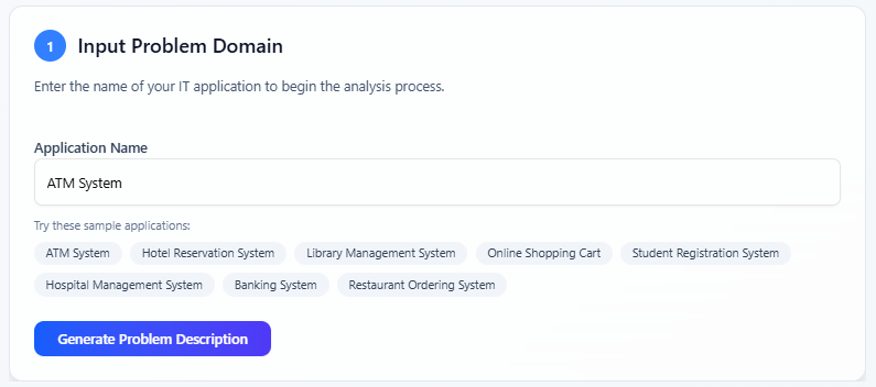 1. The AI analyzes your input and generates a paragraph-long problem description summarizing the application’s purpose and functionality.