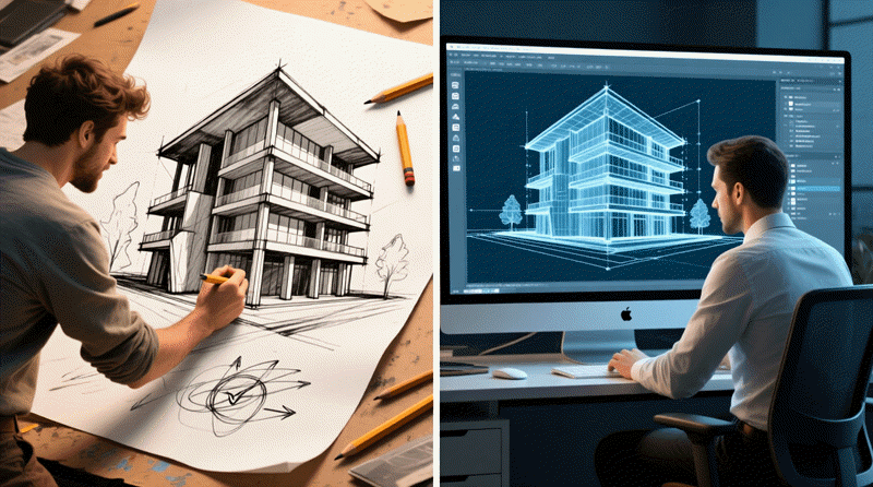 • One is a sketch artist—talented, creative, and fast with a pencil. They can quickly rough out a concept on paper based on a verbal description, capturing the overall vision with flair. However, the sketch may bend structural rules, misplace load-bearing elements, or ignore local building codes. The drawing looks impressive at first glance, but it cannot safely guide actual construction.