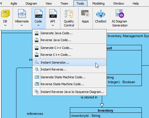1. Select Tools > Code > Instant Generator….